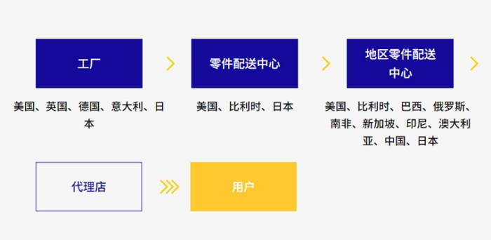 2通過遍布全國的代理店網絡,高效、快速、便捷地為用戶提供所需的純正零件。